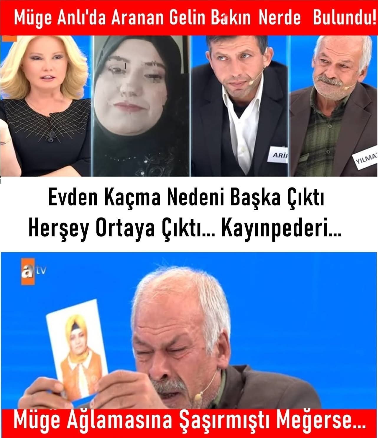 Müge Anlı'da aranan gelin bulundu, tüm gerçekler ortaya çıktı AYRINTISI YOR'UMDA.ATV’de yayınlanan Müge Anlı ile Tatlı Sert programında ele alınan Samsunlu Göçer ailesinin kayıp gelini Ceylan Göçer dosyası, canlı yayında yaşanan gözyaşları, çarpıcı iddialar ve gelen ihbarlarla Türkiye’nin gündemine oturdu. Samsunlu kayınpeder Yılmaz Göçer’in gelinine olan düşkünlüğü de şaşkınlık yarattı. Gelin nerede bulundu…