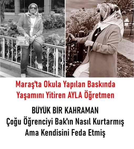 Ayla öğretmen baskında kendini böyle feda etmiş. O ANLAR YOR'UMDAKahramanmaraş’ta bir ortaokulda 8’inci sınıf öğrencisi tarafından gerçekleştirilen silahlı saldırıda 1 öğretmen ile 8 öğrenci hayatını kaybetti. Saldırıda yaşamını yitiren matematik öğretmeni Ayla Kara’nın yaptıkları herkesi duygulandırdı.