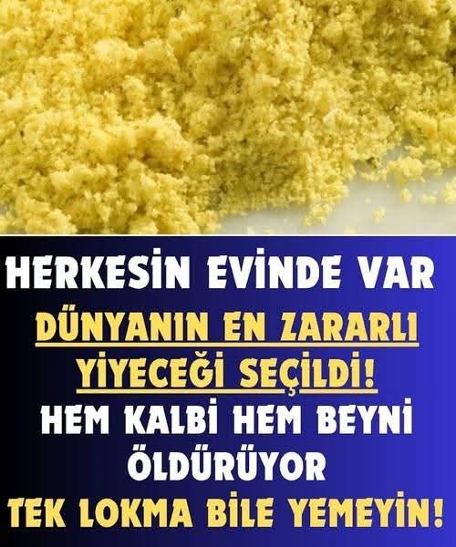 Herkesin Evinde Olan O Yiyecek, Dünyanın En TehIikeli Yiyeceği Çıktı. İşte O Yiyecek.. >> AYRINTILAR Y'0RUMDAYemeklerin tadını daha lezzetli yapmak adına içerisine katılan birçok malzeme bulunuyor. Bu malzemelerden bazılarını elde etmek zor olduğu için daha pratik çözümler kullanılıyor. Ancak yemeğin lezzetli ve pratik olması için kullanılan bu malzemeler sağlığı büyük oranda tehdit ediyor. Dünyanın en zararlı yiyeceği birçok evde bulunuyor. İşte sayısız hastalığa neden olabilen o yiyecek…