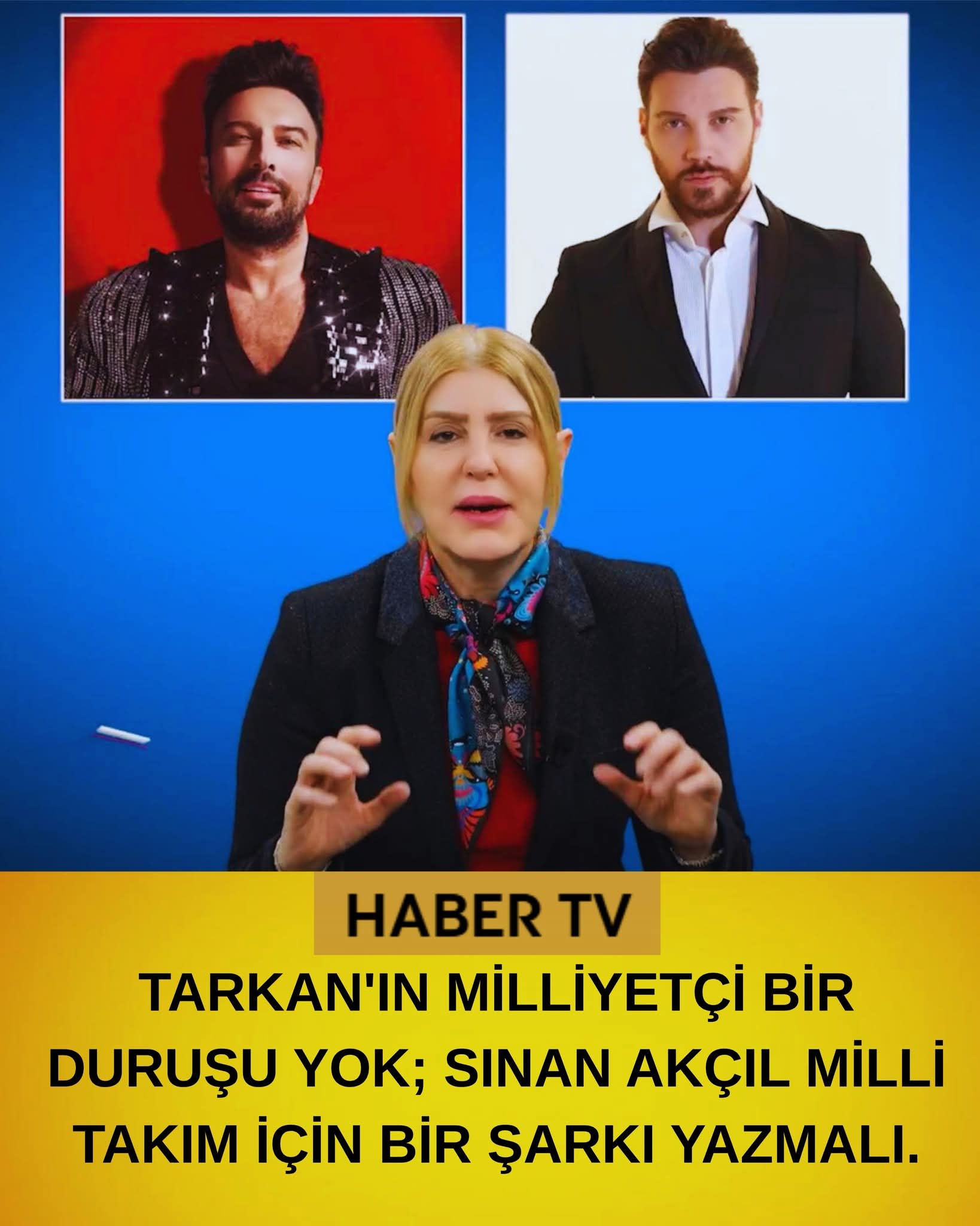 💥 Sevda Türküsev: Milli Takım'a marşı niye Tarkan yapacakmış Sinan Akçıl yapsın. Türkiye'de bugün hit olmuş 10 şarkıdan 8'i Sinan Akçıl'ın ama yine Tarkan yapsın diyorlar.