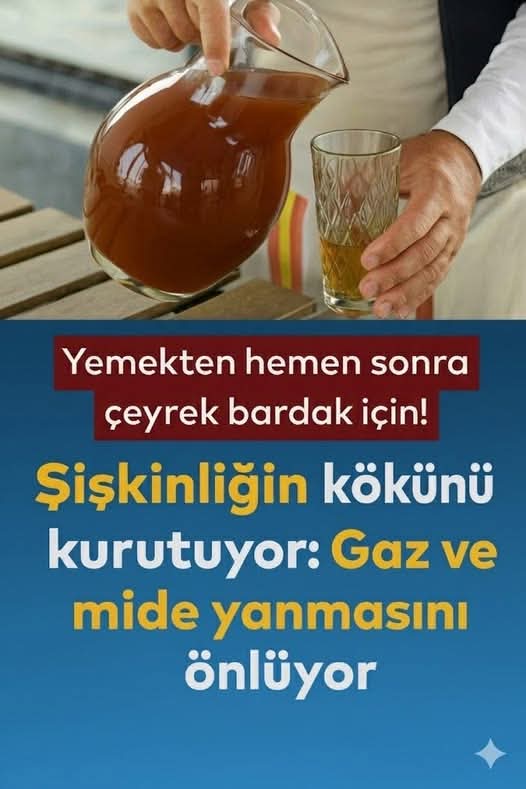 Yemekten hemen sonra çeyrek bardak için! Şişkinliğin kökünü kurutuyor: Gaz ve mide yanmasını önlüyor.. >> (Ta'rifi Y0rumda)Yemekten anında sonra içeceğiniz çeyrek bardak natural karışım, sindirim sisteminizi rahatlatabilir. Genellikle yemek ardından meydana gelen şişkinlik, gaz ve mide yanması gibi problemlerle sık karşılaşıyorsanız, bu teknik son derece faydalı.